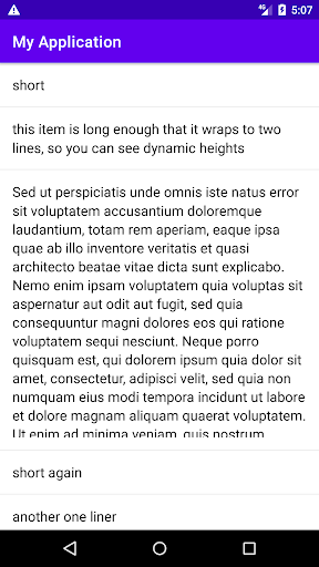 If the root view for your item views is already a ConstraintLayout, great, otherwise you can wrap whatever you do have inside it. In this contrived example, I'm using this layout (the FrameLayout is using 0dp width and wrap_content height in the XML):